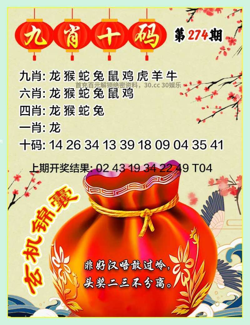274期:✨ 【猪19.羊23.虎04.鼠30.蛇37】 |